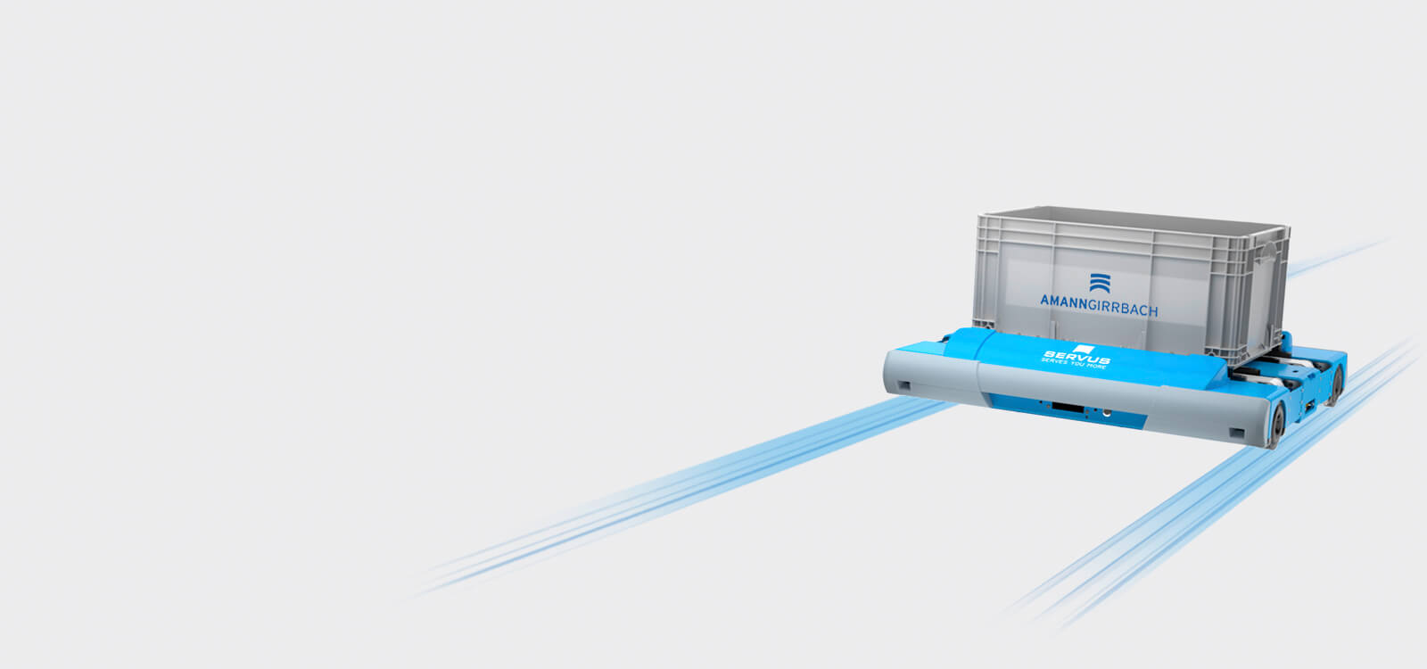 Servus übernimmt bei Amann Girrbach den Materialtransport zwischen Wareneingang, automatischem Kleinteilelager (AKL), Kommissionierung und Warenausgang sowie in den Bereichen Zirkon und Sintron. Servus hilft Amann Girrbach dabei, das richtige Material in der richtigen Menge zur richtigen Zeit am richtigen Ort bereitzustellen. Das System bringt die Ware zum Mann und automatisiert sämtliche Logistikvorgänge.